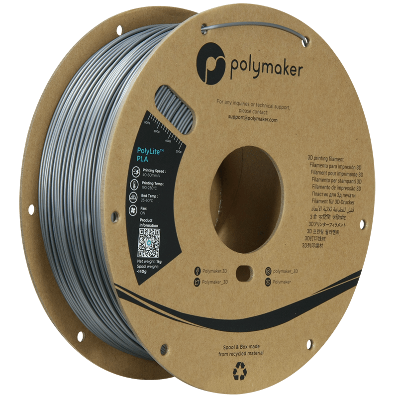 Polymaker PolyLite PLA Filament Gris Acier 1,75mm 1KG