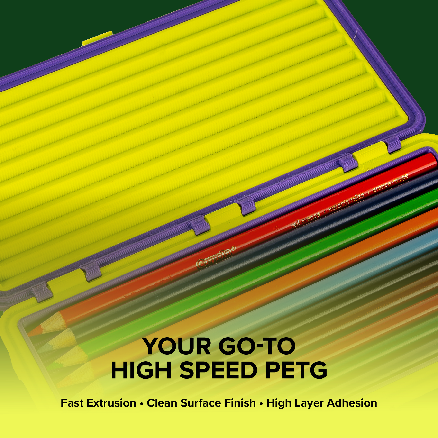 Dit filament is ontwikkeld als vervanger van PolyLite PETG en is geoptimaliseerd voor snelle productie. Het ondersteunt printsnelheden tot 300 mm/s en zelfs 500 mm/s met een high-flow hotend, zonder verlies van maatvastheid of printkwaliteit.